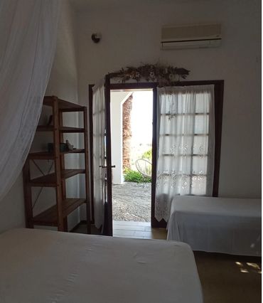 One bedroom, bathroom with shower, toilet and kitchen, shared veranda with sea view, relax area, access to beach, wi-fi, air conditioning, hair drier, mosquito net and mosquito machine, coffee machine