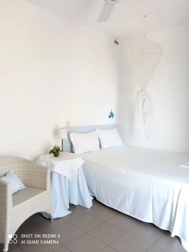 One bedroom, bathroom with shower, toilet and kitchen, shared veranda with sea view, relax area, access to beach, wi-fi, air conditioning, hair drier, mosquito net and mosquito machine, coffee machine.